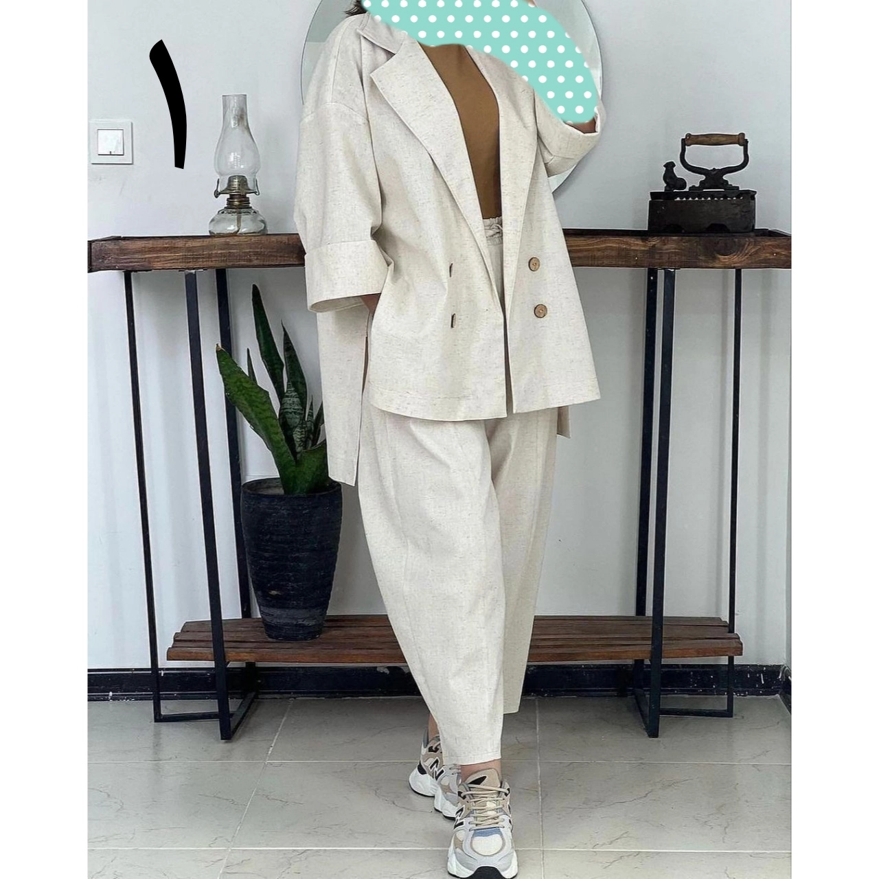 ست کت شومیز کت شومیزی مانتوکتی و شلوار لنین فری سایز ۳۸ تا ۴۴