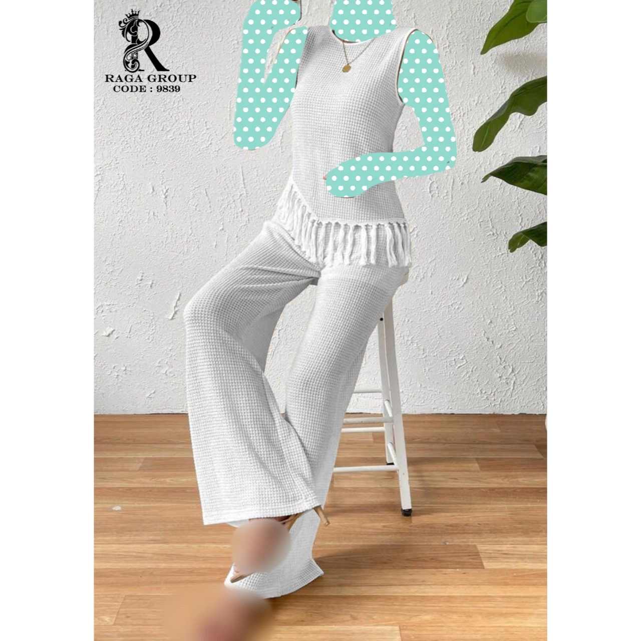 ست تاپ و شلوار مراکشی بیسکوییتی پایین ریش فری سایز ۳۸ تا ۴۴
