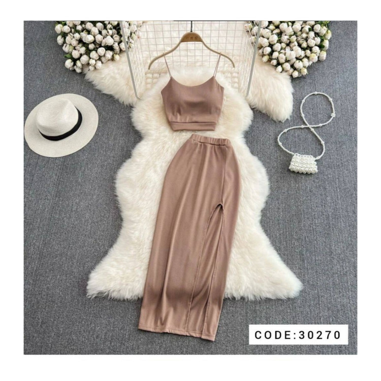 نیمتنه تاپ کراپ کاپدار و دامن فانریپ کبریتی فری سایز ۳۶ تا ۴۴