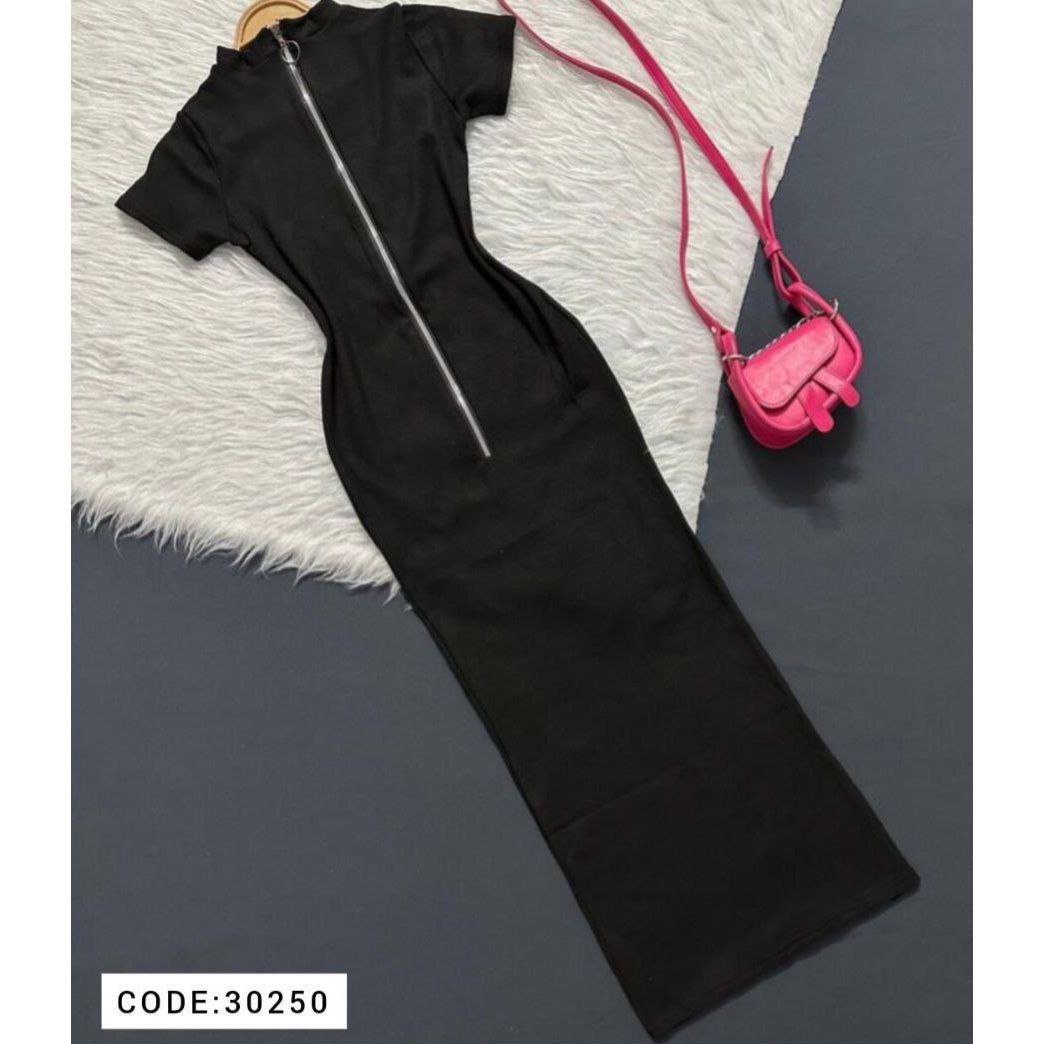 کد ۳۰۲۵۰ ماکسی پیراهن تونیک مشکی بلند کش بافت کبریتی زیپ ۶۰ سانتی فری سایز ۳۶ تا ۴۲ قد ۱۳۰ ایزی شاپ آنلاین