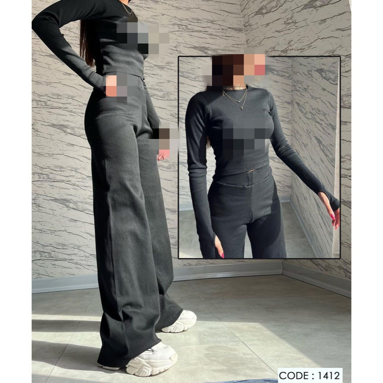 کد ۱۴۱۲ ست کراپ تیشرت نیمتنه و شلوار آستین فینگردار انگشتی فانریپ کبریتی فری سایز ۳۶ تا ۴۲ ایزی شاپ آنلاین