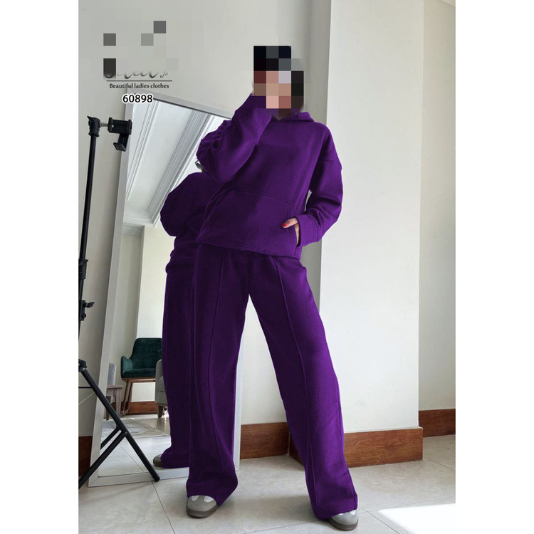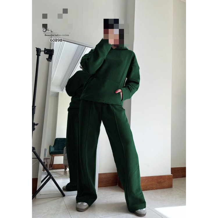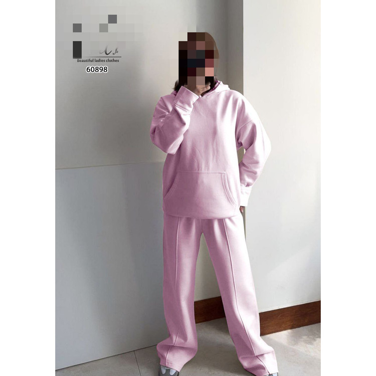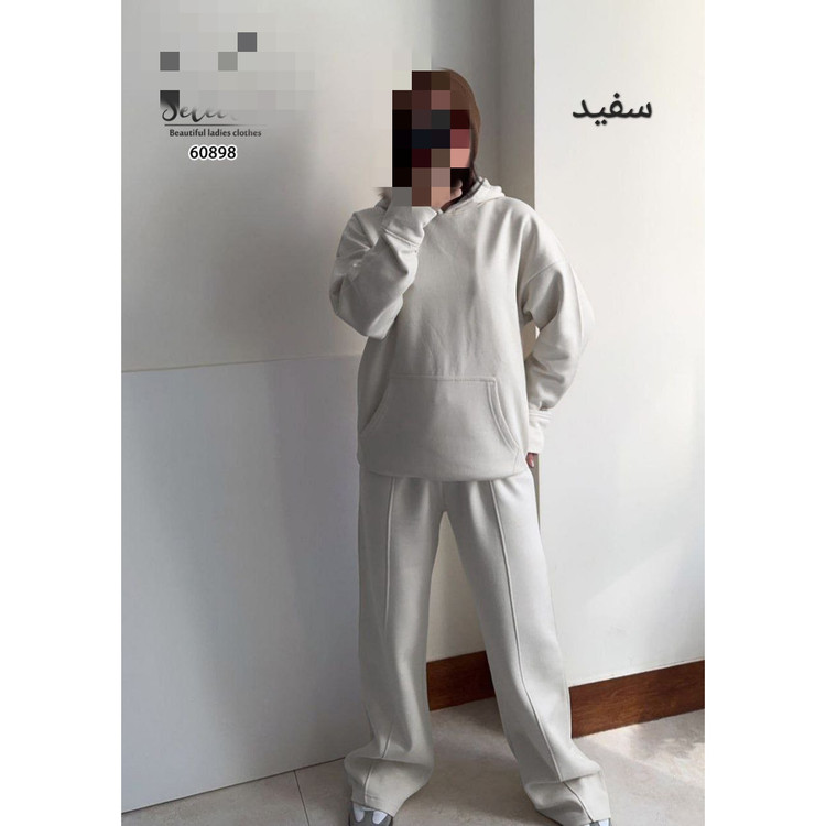 کد 60898 ست هودی کلاه دار و شلوار بگ گشاد نیش دار دورس تو کرکی فری سایز ۳۶ تا ۴۴ ایزی شاپ آنلاین