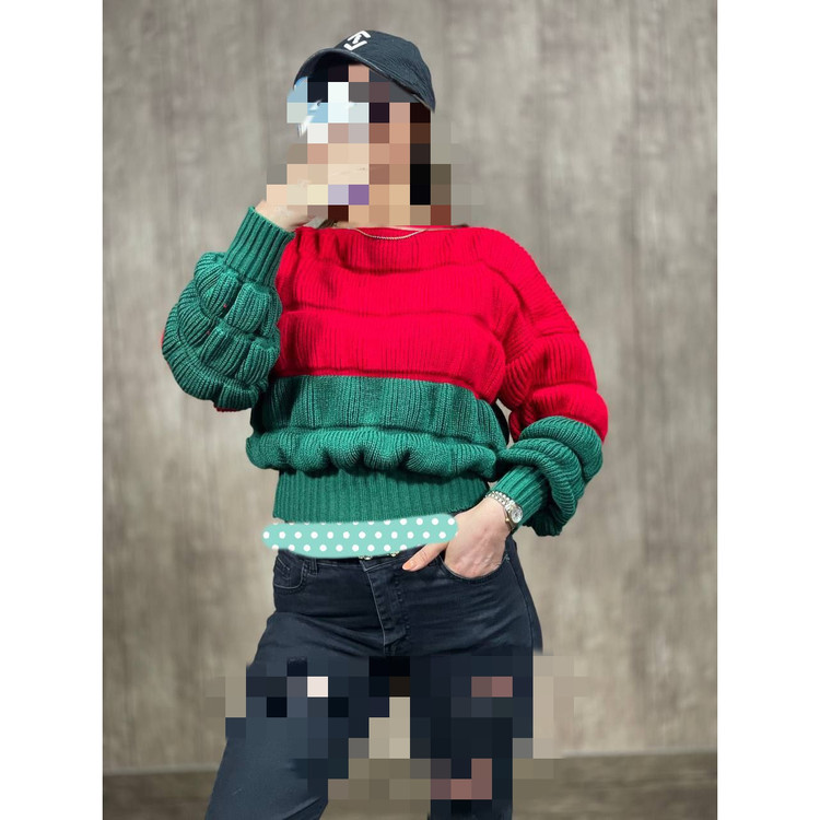 کد 02147 کراپ نیمتنه بافت پفکی هندونه ای فری سایز ۳۸ تا ۴۴ آکرلیک ایزی شاپ آنلاین