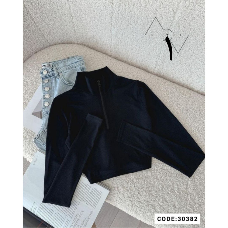 کد 30382 کراپ نیمننه آستین بلند فینگری شصتی جلو زیپ دار کبریتی فری سایز ۳۶ تا ۴۲ ایزی شاپ آنلاین