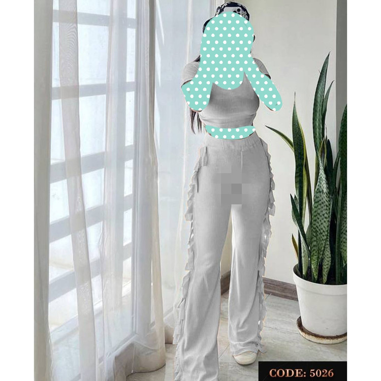 کد 5026 ست کراپ تیشرت نیمتنه و شلوار فانریپ پنبه کبریتی فری سایز ۳۶ تا ۴۴ ایزی شاپ آنلاین