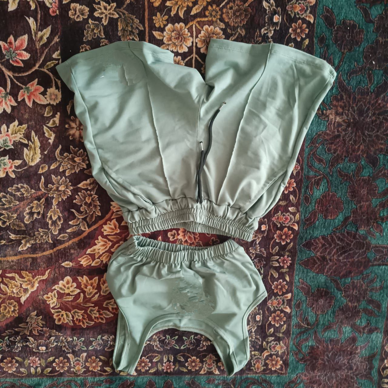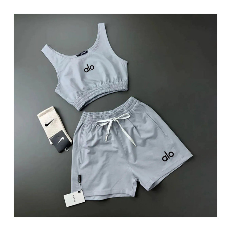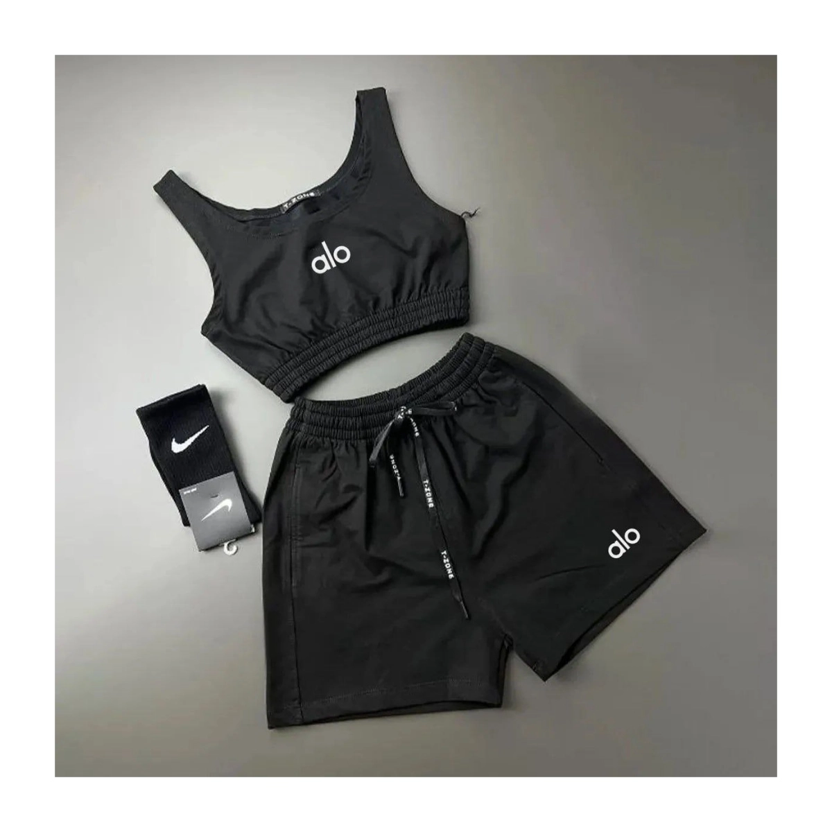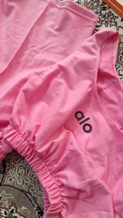 ست نیمتنه کراپ تاپ تاپی و شلوارک شورتک جنس و پنبه گلکسی الو alo فری سایز ۳۶ تا ۴۴ ایزی شاپ آنلاین b&t