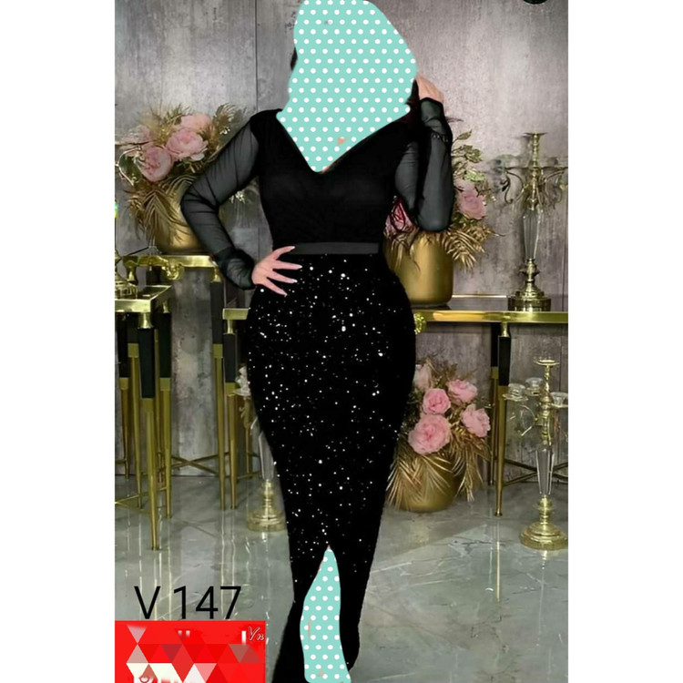 کد V147 ماکسی پیراهن دامن پولکی غواصی و مخمل پولکی فری سایز ۳۸ تا ۴۴ ایزی شاپ آنلاین