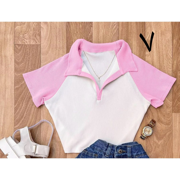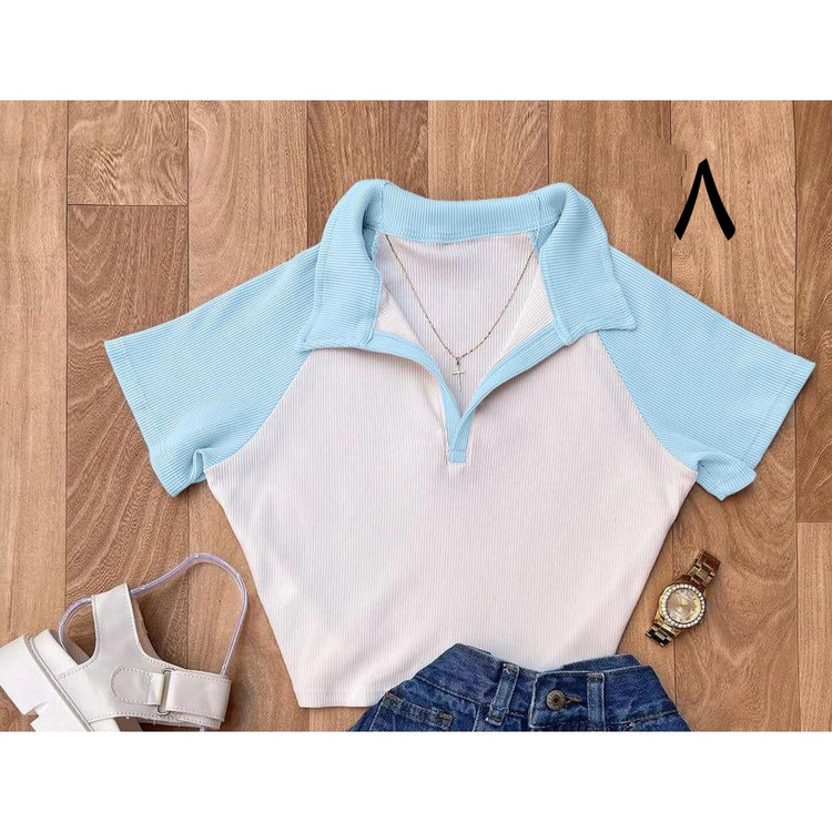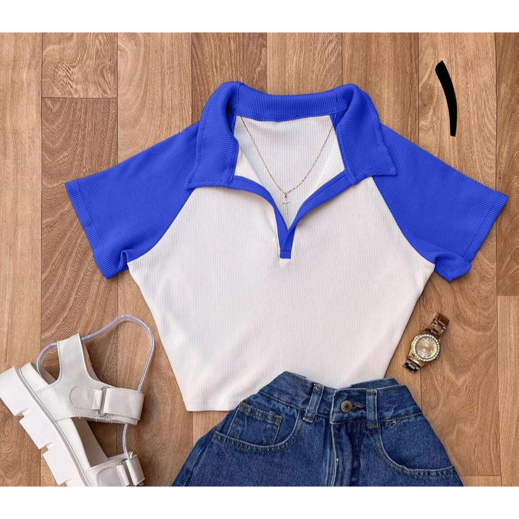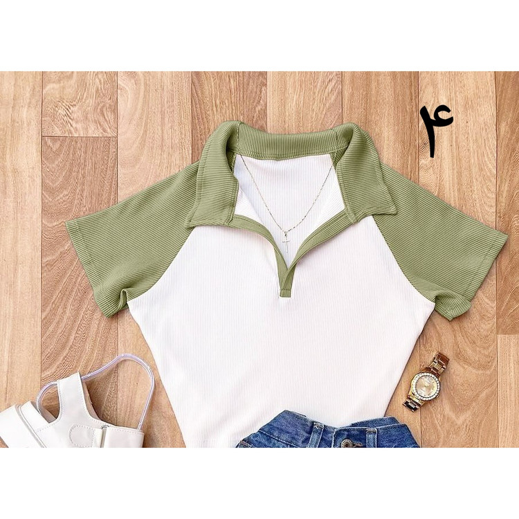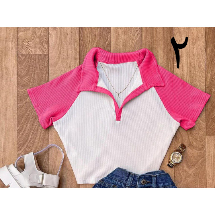 کد 1496 کراپ تیشرت نیمتنه تک یقه دار فانریپ کبریتی فری سایز ۳۶ تا ۴۰ قد ۴۵ ایزی شاپ آنلاین