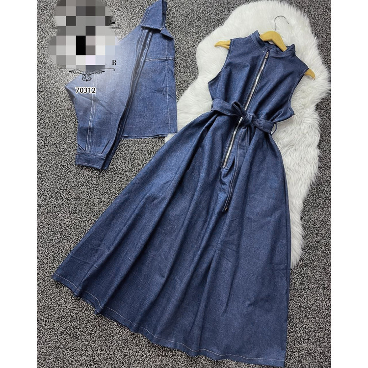 کد 70312 ست کت رویه و سارافون ماکسی جین تنسیل فری سایز ۳۸ تا ۴۶ ایزی شاپ آنلاین
