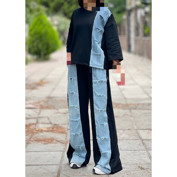 کد 9850 ست تیشرت بلوز و شلوار گلکسی پنبه فری سایز 36 تا 46 ایزی شاپ آنلاین