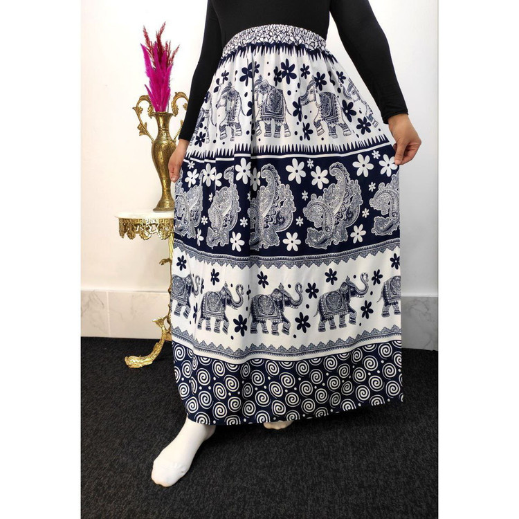 دامن نخی حاشیه دار فیلی طرح دار فری سایز ۳۸ تا ۵۲ قد ۱۰۰ ایزی شاپ آنلاین