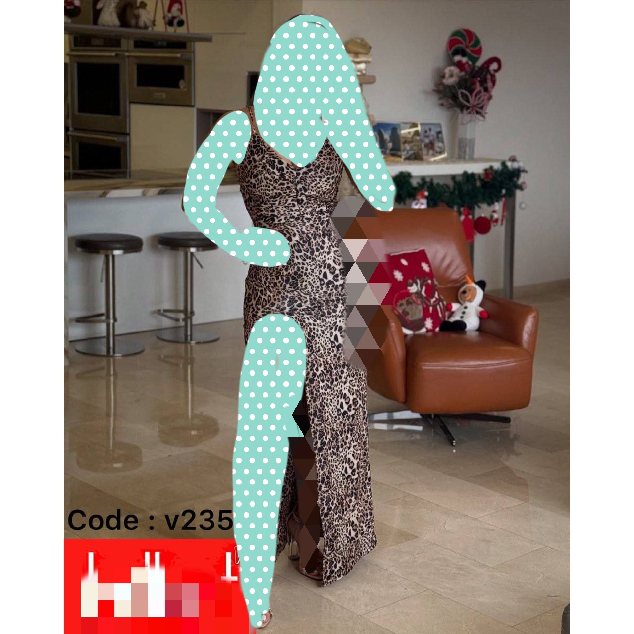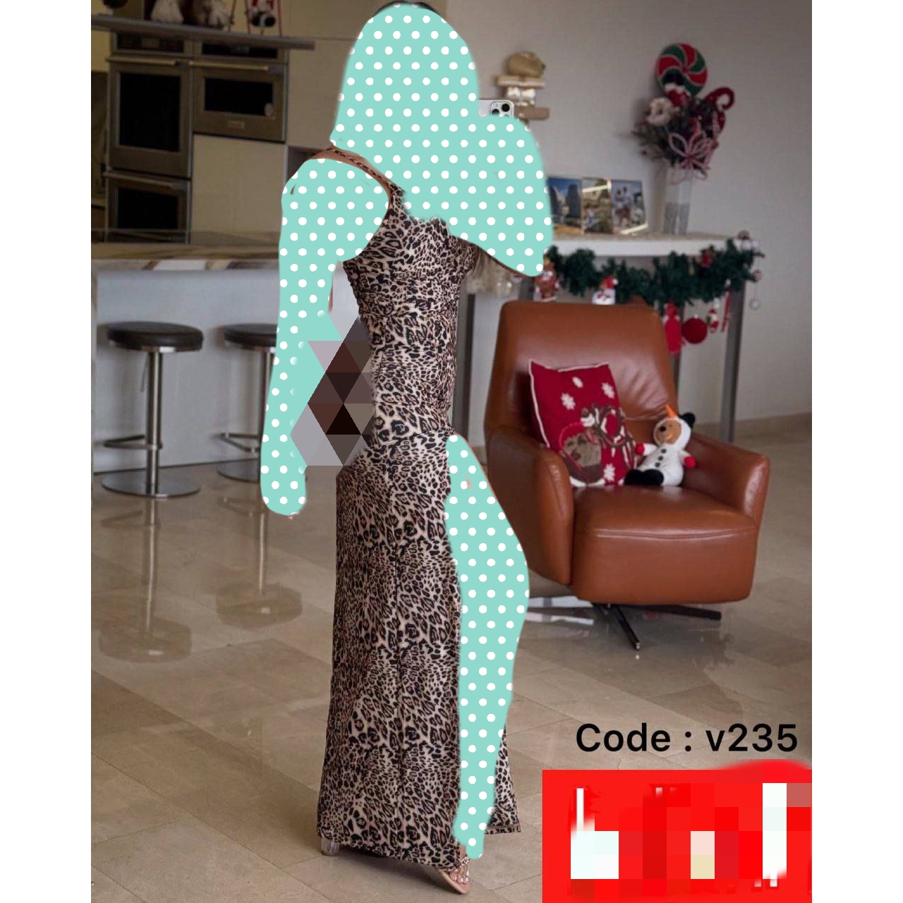 کد V235 پیراهن ماکسی سارافون تونیک پلنگی فلامنت فری سایز 38 تا 44 ایزی شاپ آنلاین