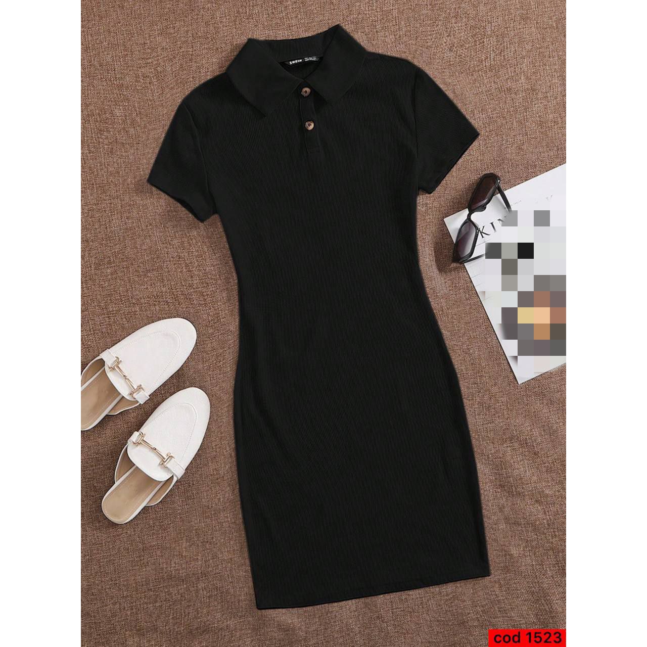 کد 1523 پیراهن ماکسی سارافون تونیک یقه دار دکمه ای فانریپ کبریتی فری سایز 36 تا 42 قد 85 ایزی شاپ آنلاین