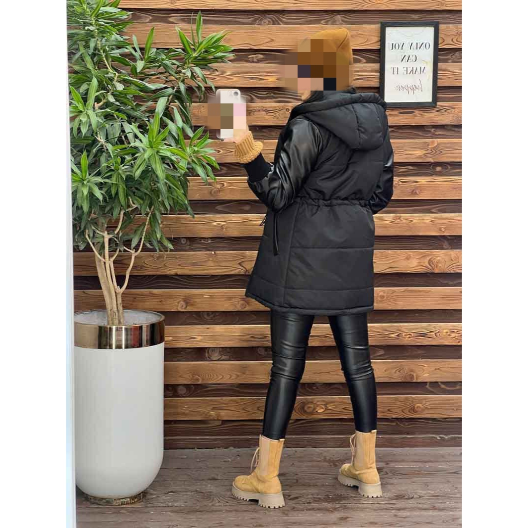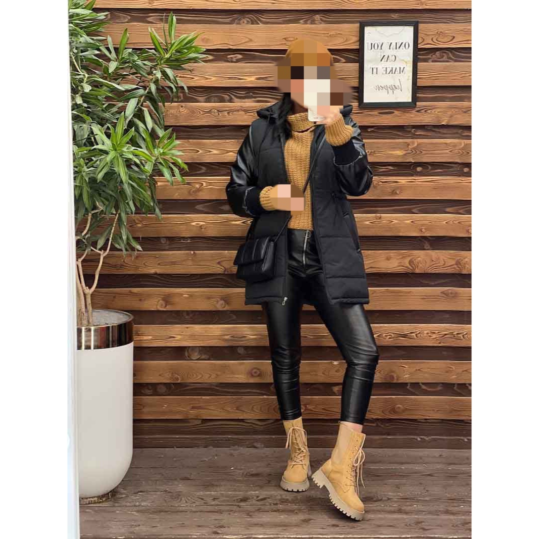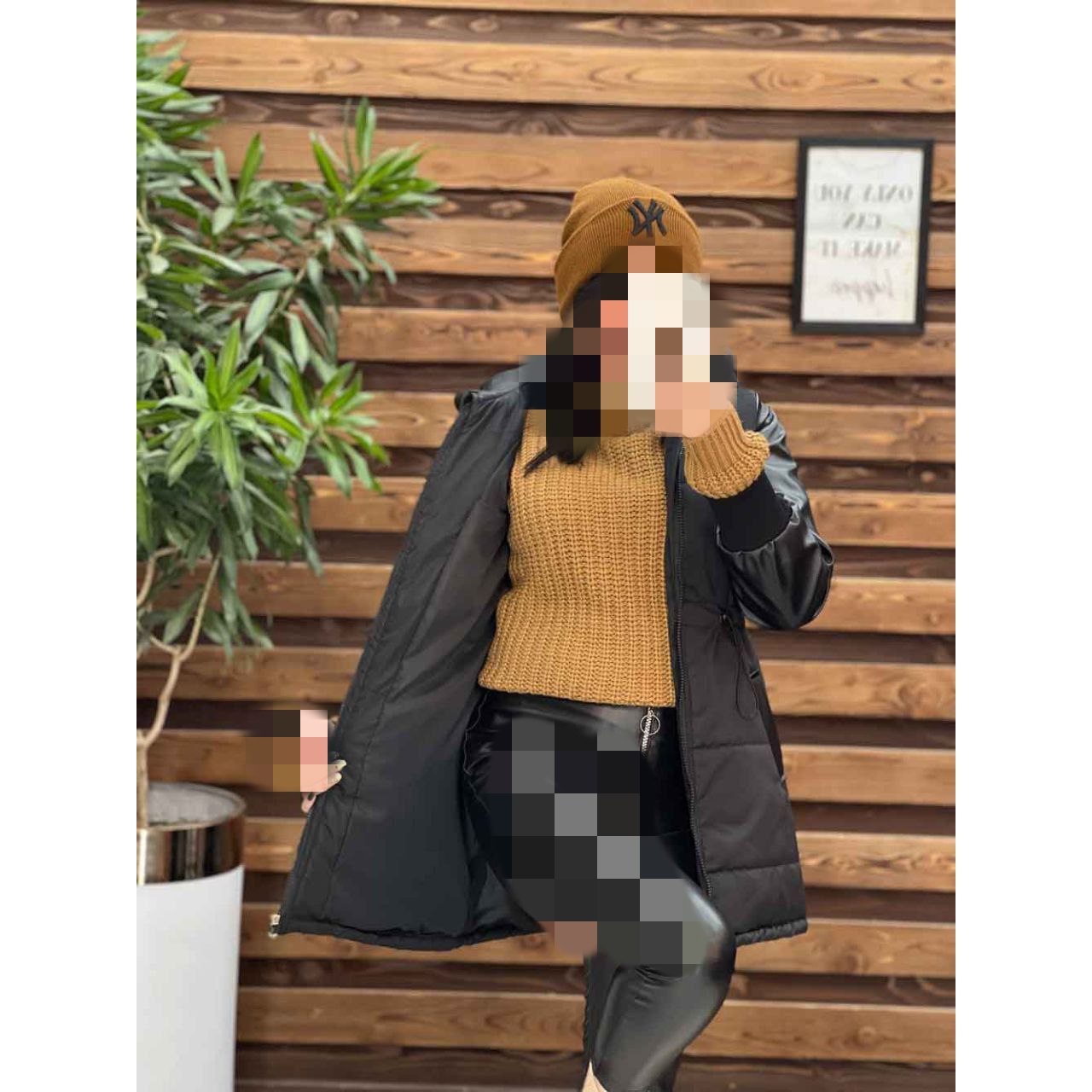 کد 021107 کاپشن آستین چرم مموری قد ۷۵ فری سایز ۳۸ تا ۴۶ ایزی شاپ آنلاین