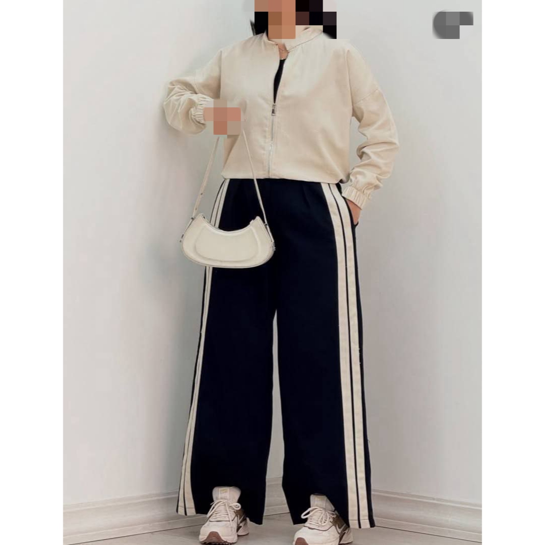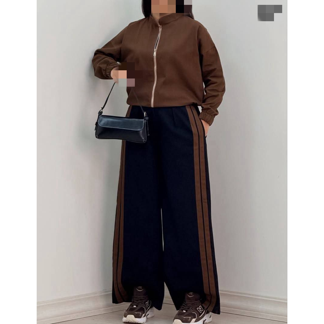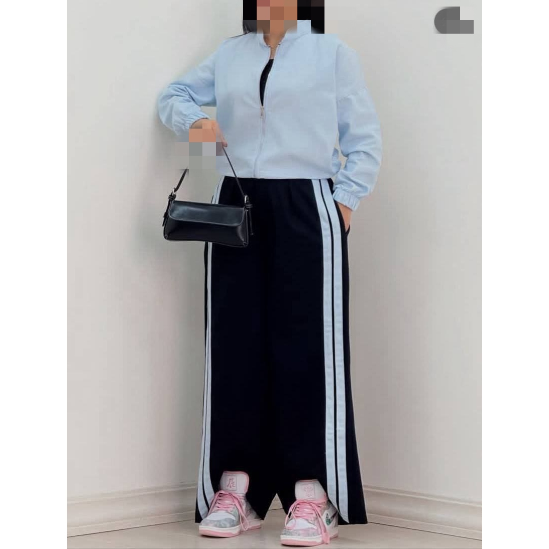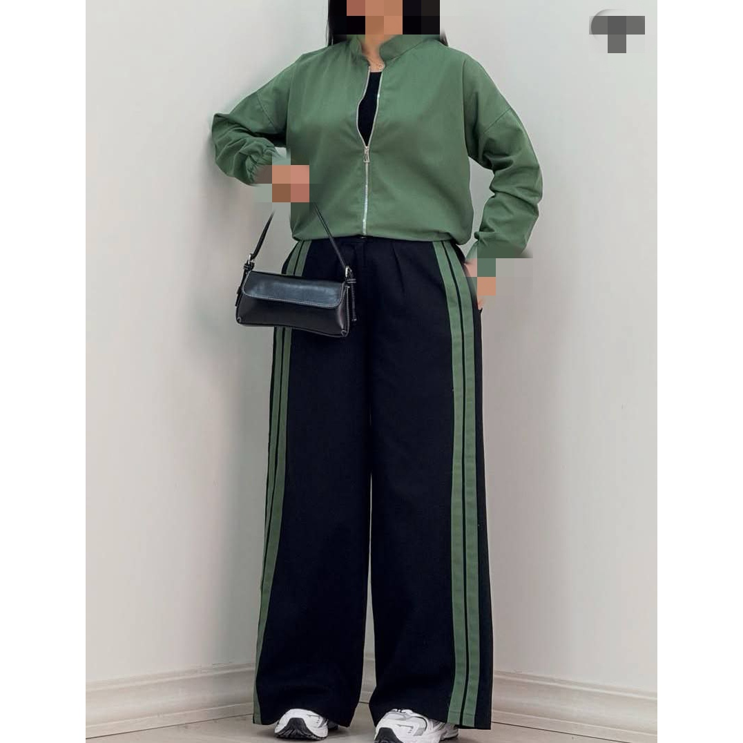 ست کراپ نیمتنه بامبر و شلوار بگ دو خط کتان کج راه فری سایز 38 تا 46 ایزی شاپ آنلاین