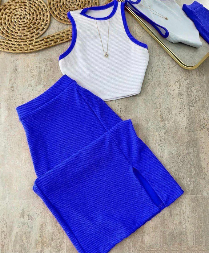 ست کراپ نیمتنه تاپ و دامن چاکدار فری سایز 36 تا 42 ایزی شاپ آنلاین