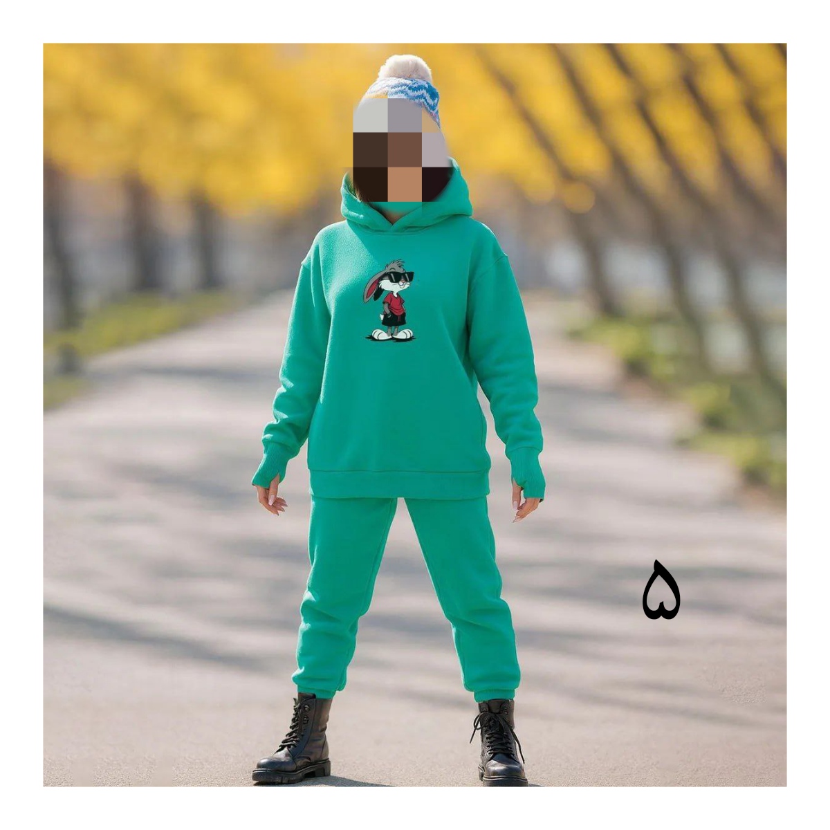 کد 10158 ست هودی کلاه دار و شلوار جاگر کرکی فری سایز 36 تا 44 ایزی شاپ آنلاین