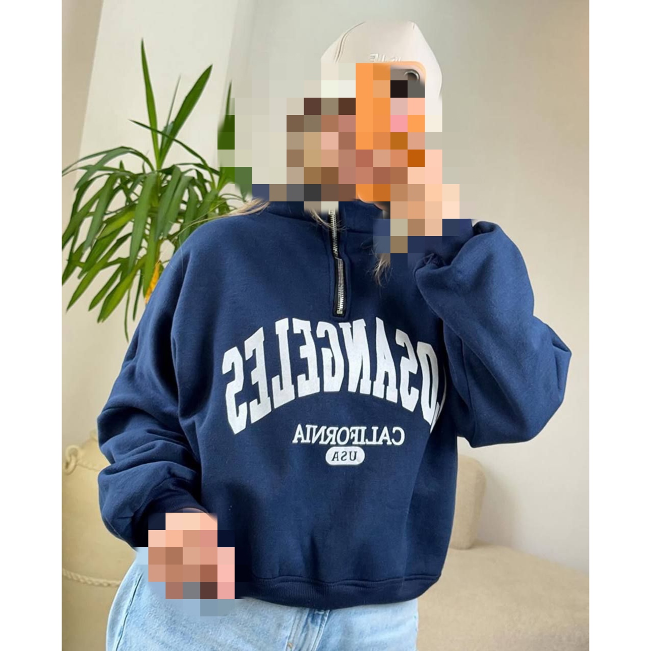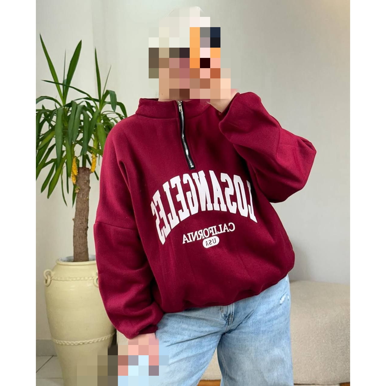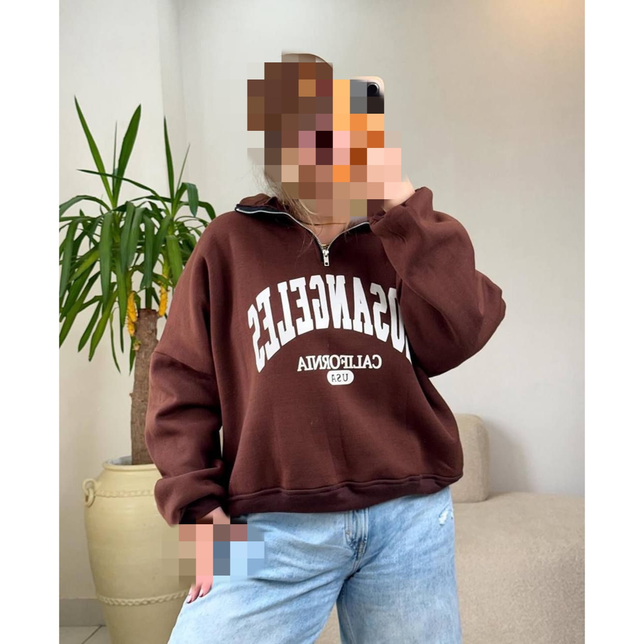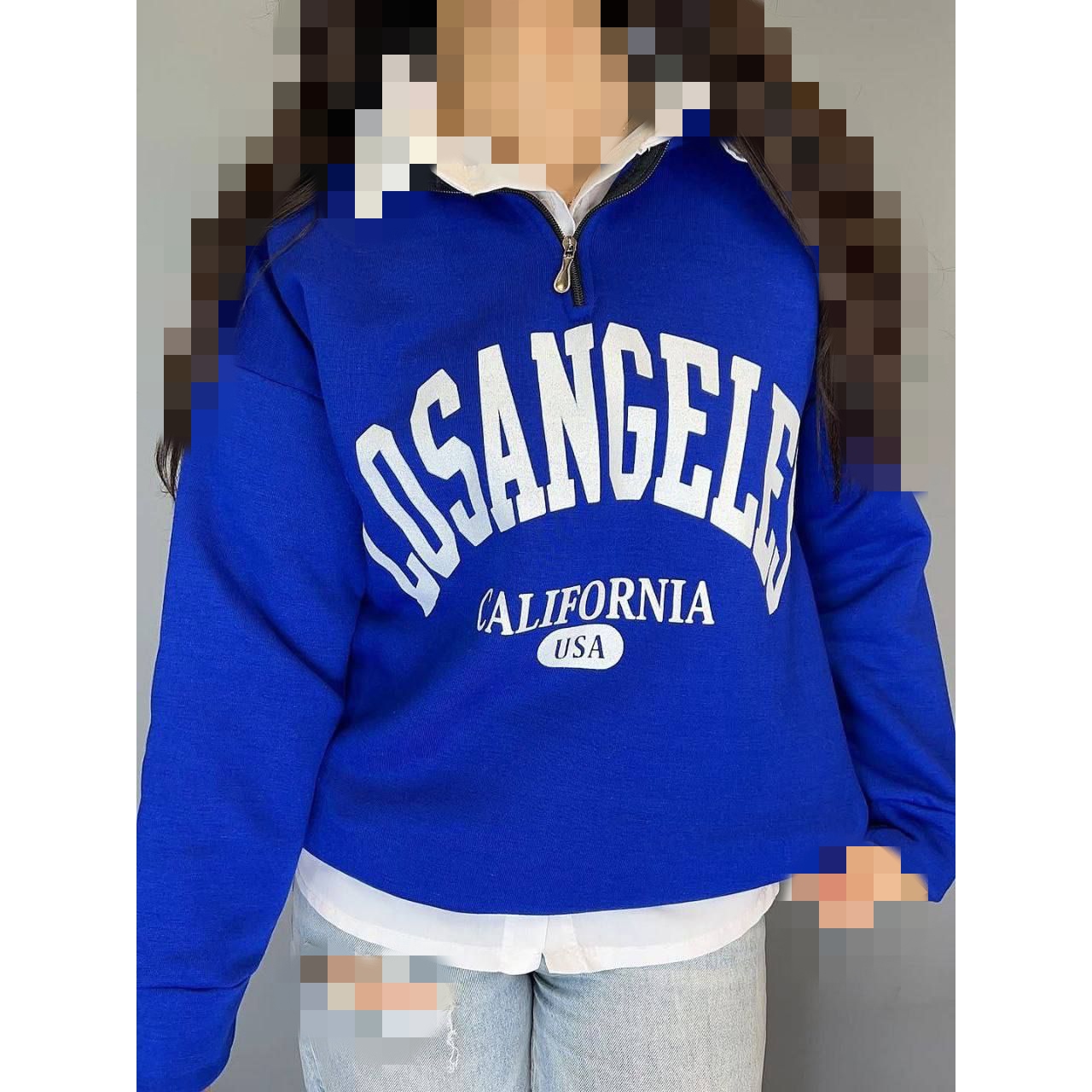 هودی دورس بدون کلاه نیم زیپ چاپی لس آنجلس تو کرکی فری سایز 36 تا 44 ایزی شاپ آنلاین