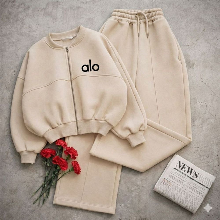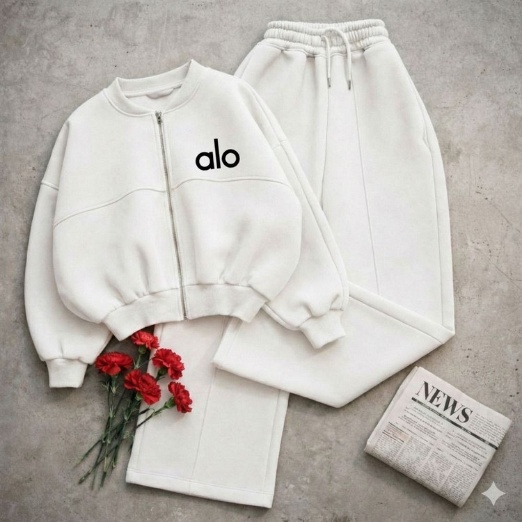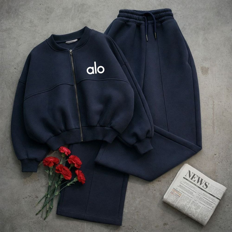 B&T ست سویشرت کراپ و شلوار بگ الو alo تو کرکی فری سایز 36 تا 44 ایزی شاپ آنلاین