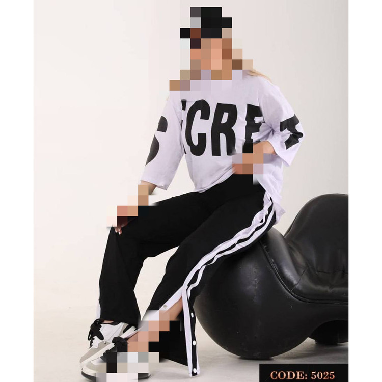 کد 5025 ست تیشرت شلوار بگ گشاد جنس نخ پنبه فری سایز ۳۶ تا ۴۴