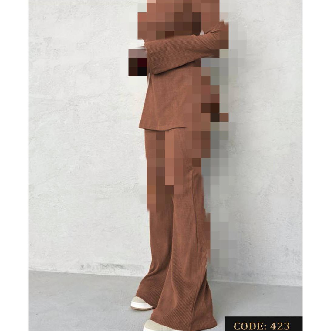 کد 423 ست بلوز و شومیز تیشرت و شلوار بوتکات بغل چاکدار فانریپ پنبه کبریتی فری سایز ۳۶ تا ۴۲