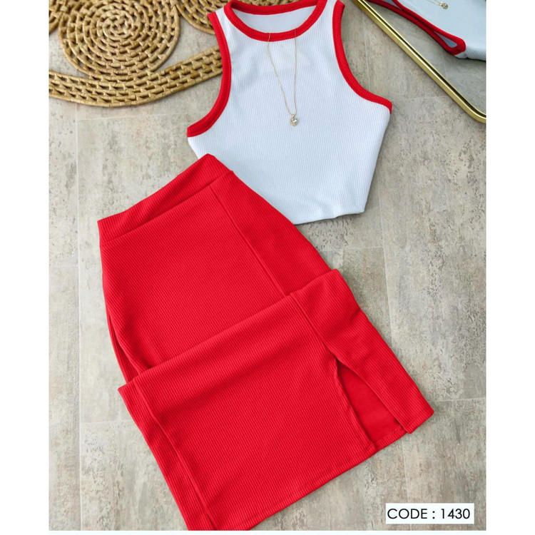 کد ۱۴۳۰ ست تاپ کراپ نیمتنه و دامن چاکدار فانریپ کبریتی فری سایز ۳۶ تا ۴۲ ایزی شاپ آنلاین