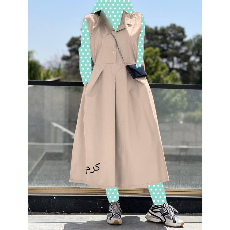 پیراهن تونیک ساحلی بلند یقه دار لنین فری سایز ۳۶ تا ۴۲ قد ۱۲۵