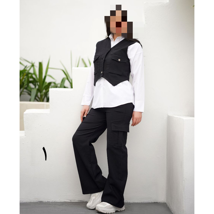 🧥ست سه تیکه (شوميز.جلیقه.شلوار کارگو(
