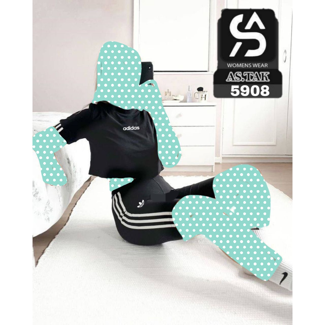 ست دو تیکه نیمتنه کراپ وشورتک آدیداس سوپر فلامنت فری سایز ۳۸ تا ۴۴