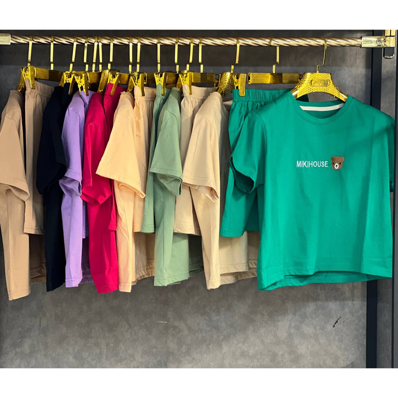 ست کراپ نیمتنه تیشرت و شورتک شلوارک پنبه فری سایز ۳۸ تا ۴۴