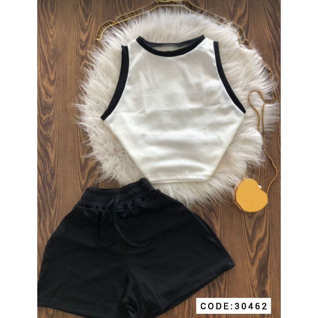 کد 60201 تاپ کراپ نیمتنه و شورتک کمرگنی فری سایز 36 تا 44 ایزی شاپ آنلاین