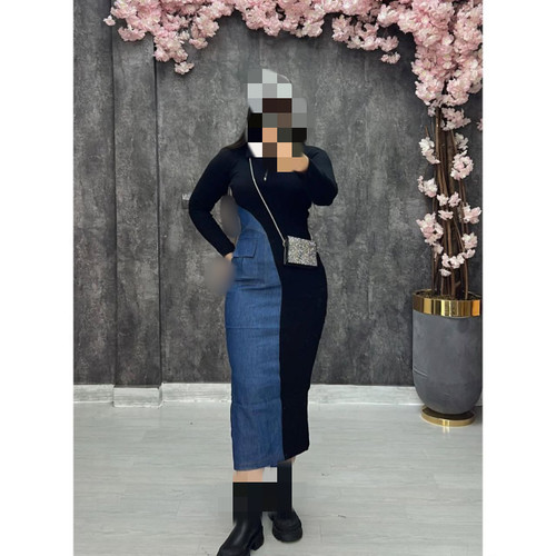 کد 021033 پیراهن ماکسی تونیک بلند ترکیبی جین و فانریپ قد ۱۳۸ فری سایز ۳۶ تا ۴۴ ایزی شاپ آنلاینناموجود