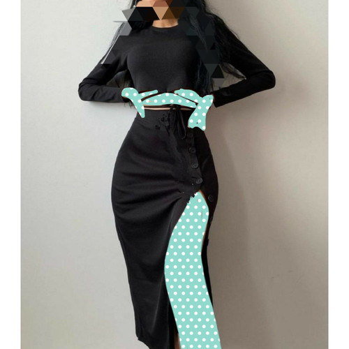 ست کراپ نیمتنه تاپ و دامن چاکدار فری سایز 36 تا 42 ایزی شاپ آنلاین